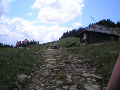 Через полтора–три часа, в зависимости от темпа подъема, дорога лесом приводит на горную долину Шурин (Под ли Шурин), где есть хижина, вода. Вот такой нас встретила Полонына.