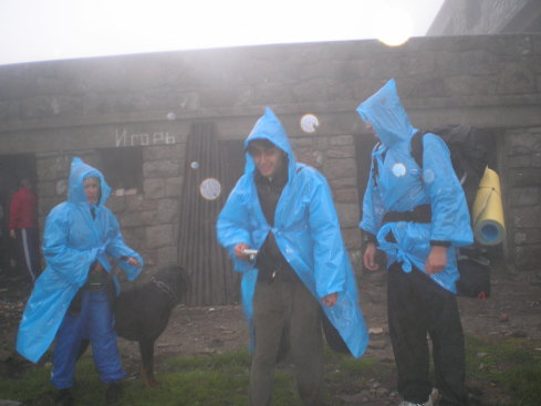 Был сильный туман, фото получилось мало и не очень хорошего качества, но комедийные. От такой погоды, холода (трусило так, что я не могла даже для согрева удержать бутылку в руках) и условий, оставалось только здороваться с другими типа «Здравствуйте, Земляне», корчить друг другу рожицы и улыбаться в камеру! Пип-Иван мы тебя не сделали, это ты нас сделал по полной! Еще мы пели дурацкую песню "Кайфуем, сегодня мы с тобой кайфуем", в общем, все, что лезло в голову, ища друг друга в тумане.